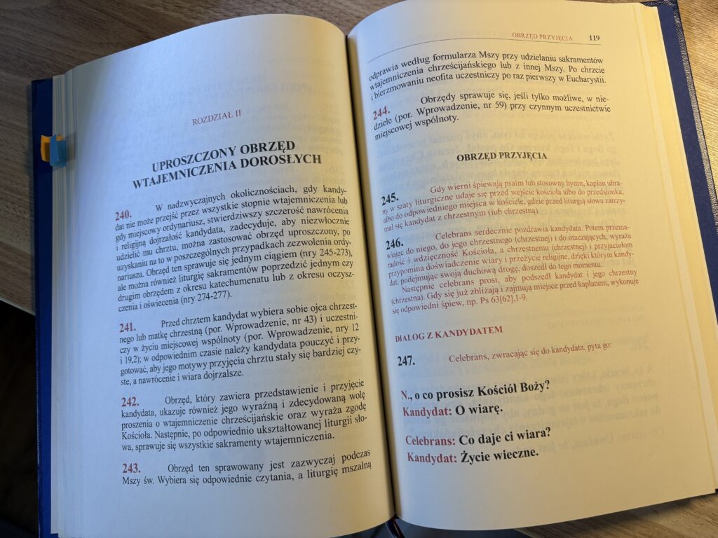 Za zgodą ordynariusza miejsca czasami odbywa się uproszczony obrzęd wtajemniczenia dorosłych. Dziś 22 czerwca 2025 w kolegiacie Myśliborskiej przyjęła chrzest, bierzmowanie i Eucharystię osoba 80-letnia. Od grudnia ubiegłego roku s. Anna dojeżdżała do niej na spotkania, rozmowy, katechezy. Ale też wielką pomocą dla wiary pani M. były sąsiadki, które nie tylko dawały przykład chrześcijańskiego życia, ale też uczyły ją modlitwy i zabierały na nabożeństwa do kościoła. Bóg – Dobry Pasterz – odszukał swoją owieczkę i przez ludzi przyprowadził ją do źródeł wód życia. Bogu niech będą dzięki!